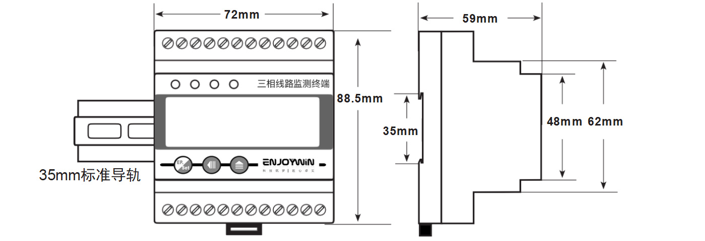 * 35mm标准导轨式安装;